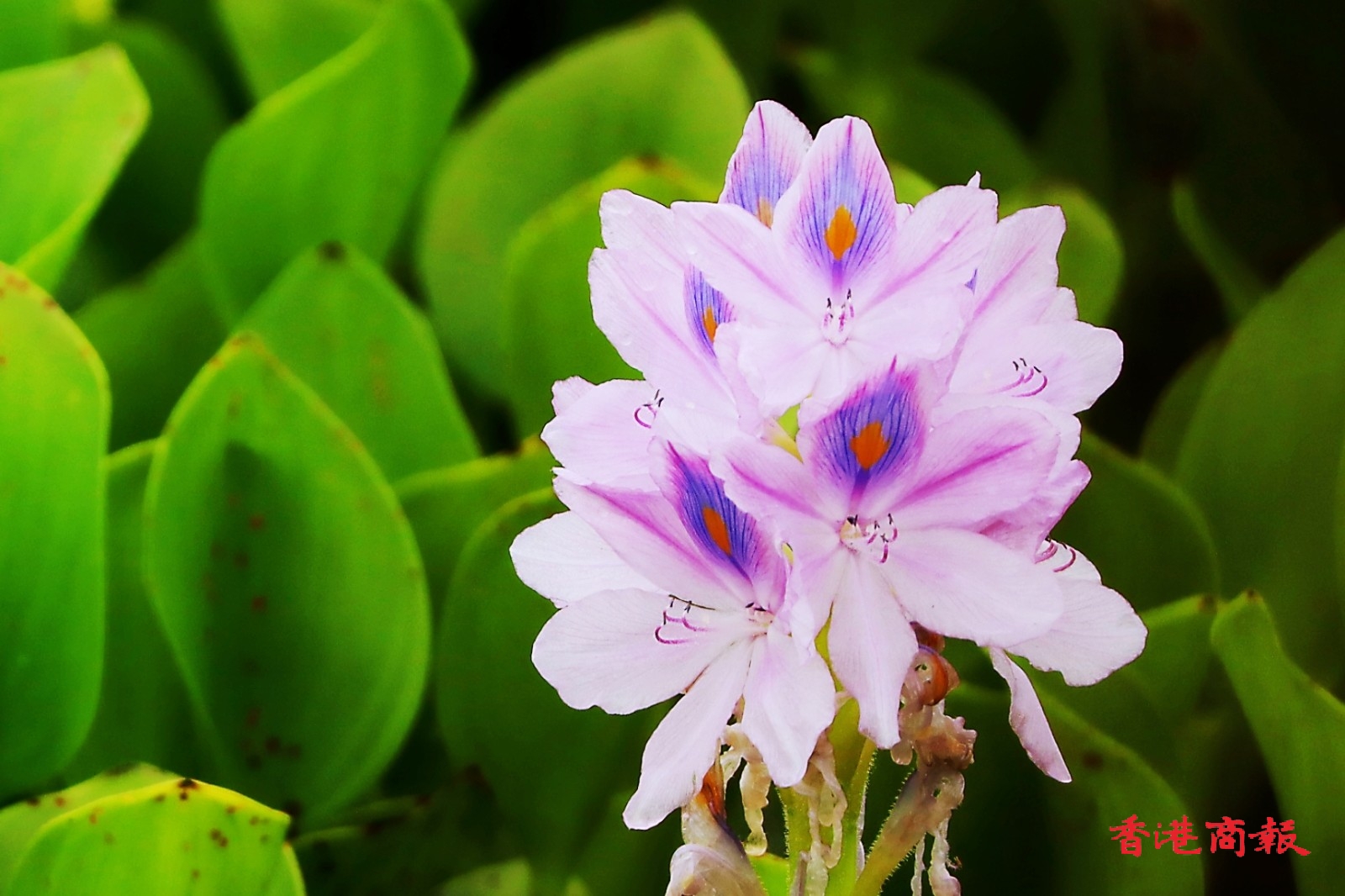 鳳眼藍雖然獨特,而且能吸收水中的有毒物質,但它卻十分「霸道」,由於生長繁殖極快,會快速覆蓋水面,從而令其他植物,甚至魚類缺氧死亡。 (馮瀚文 攝)