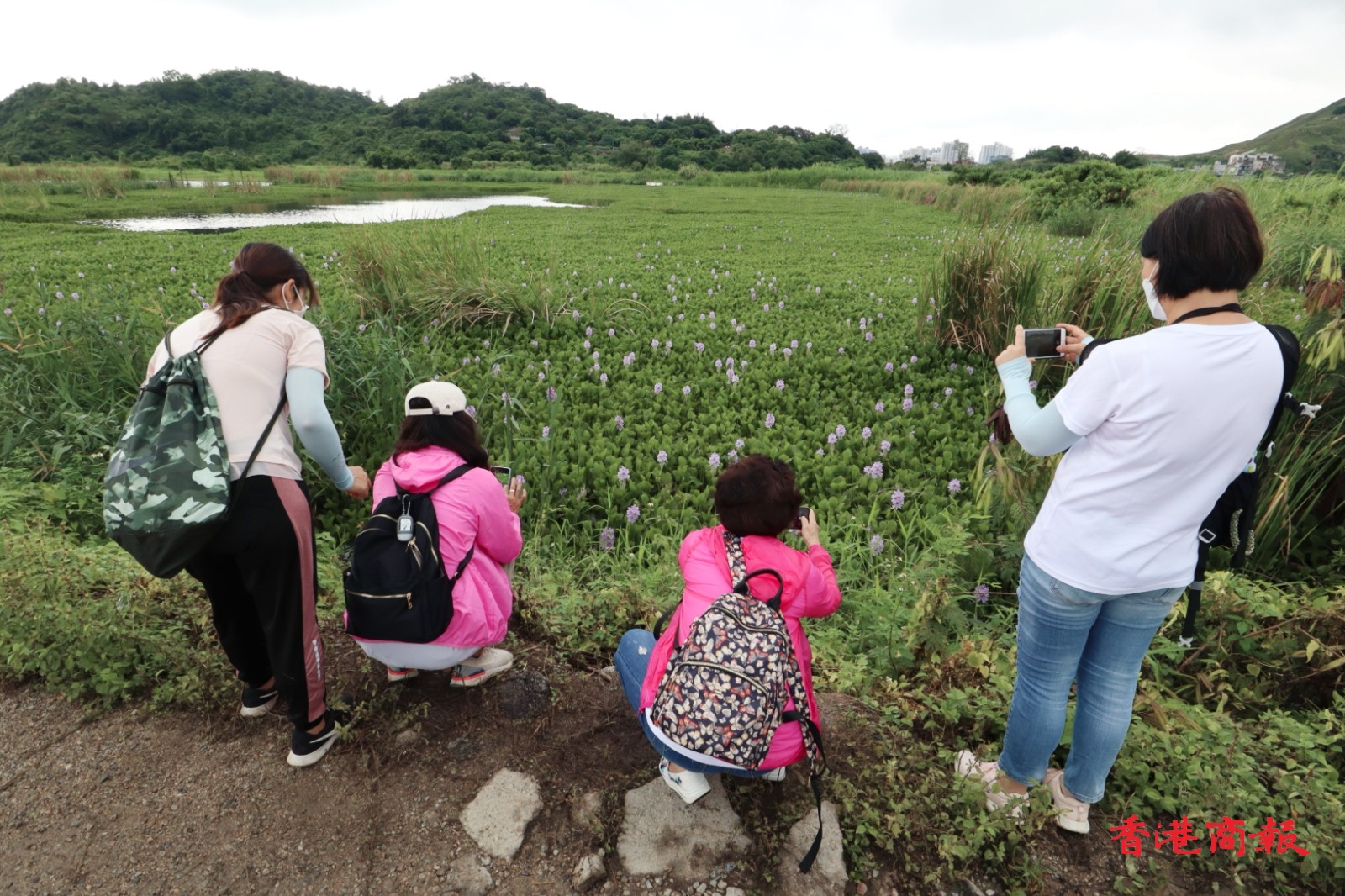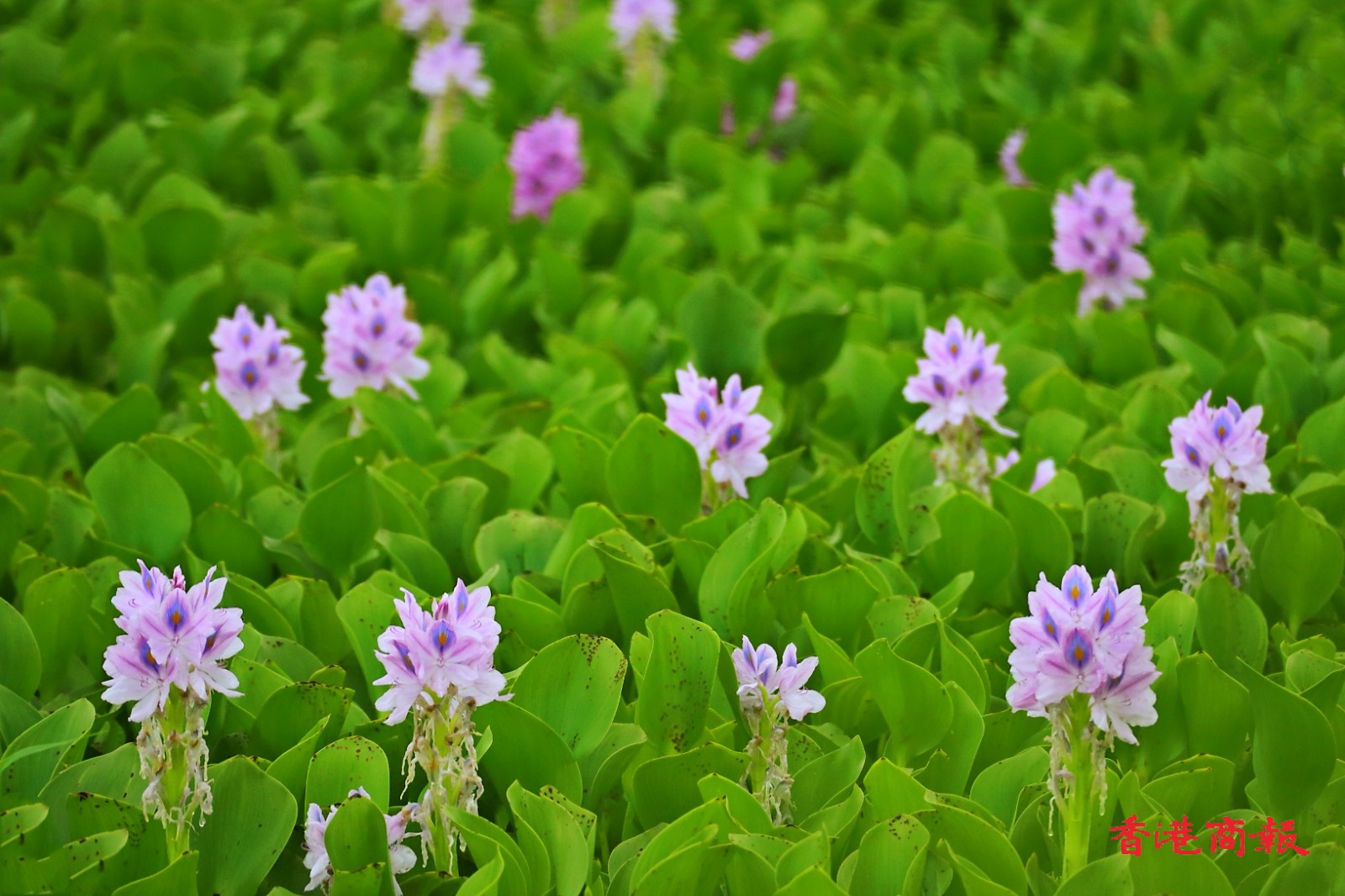踏入初夏,香港到處仍然鮮花盛開,在元朗盛屋村的魚塘,可以看到外形獨特的鳳眼藍,大面積開花形成的一片花海十分壯觀,吸引不少愛花者和攝影愛好者慕名而來。但鳳眼藍只有一天的花期,有陽光才開花,晚上就會凋謝,不過由於其生長速度快,只要有充足的陽光,第二天又會有新的花盛開,所以看不看到花海,也需要一點運氣。