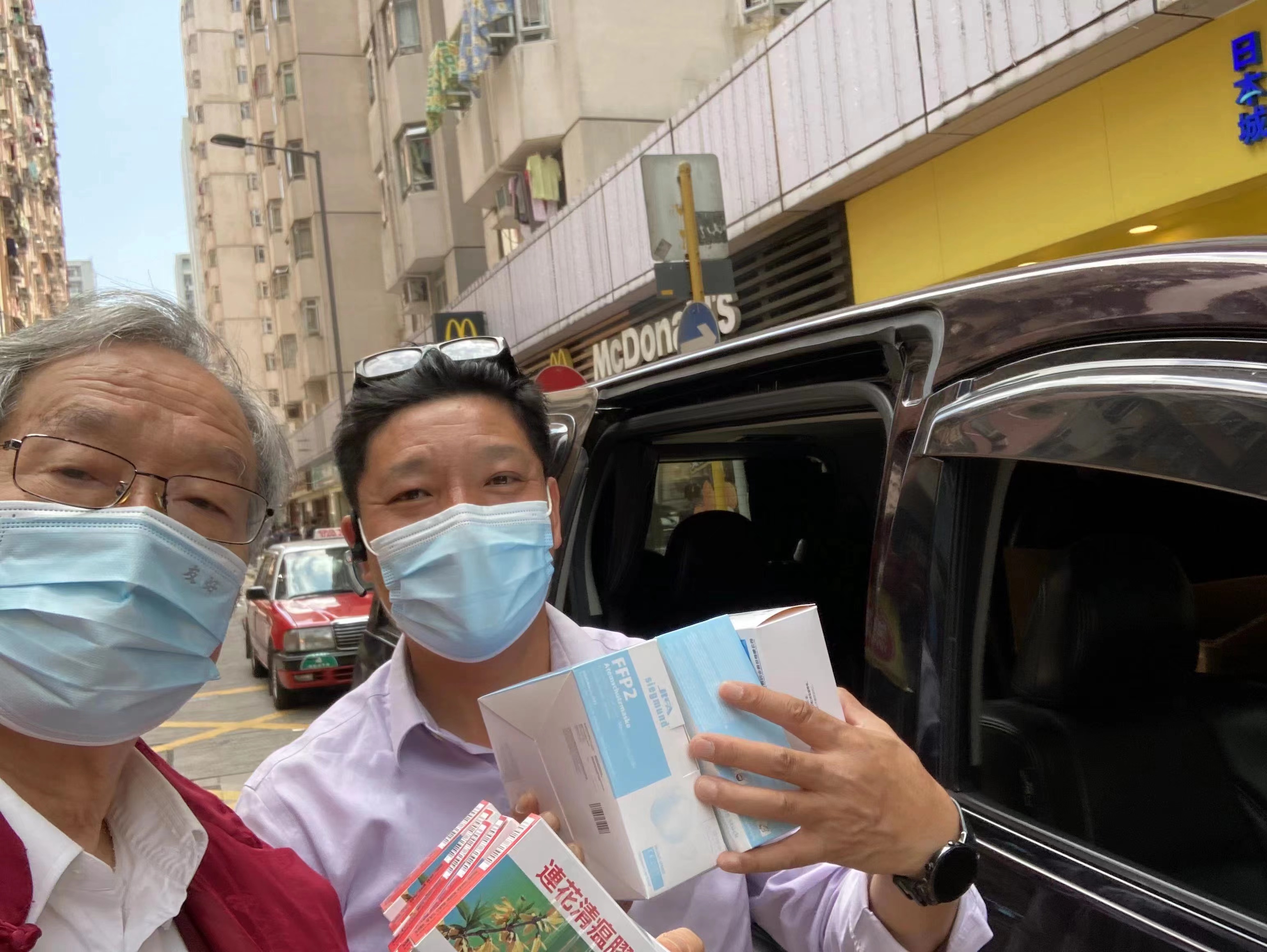 厲文強會長在疫情嚴重的3月,親自將來自家鄉的防疫物品送到鄉親手上。