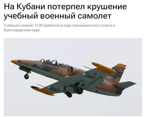 據報道,當天,俄羅斯國防部發布消息稱,「2023年8月14日,航空訓練團一架L-39教練機在克拉斯諾達爾地區執行訓練任務期間,在進場着陸時發生墜毀事故。飛機在機場內墜毀,沒有造成地面財產損壞和人員傷亡。」