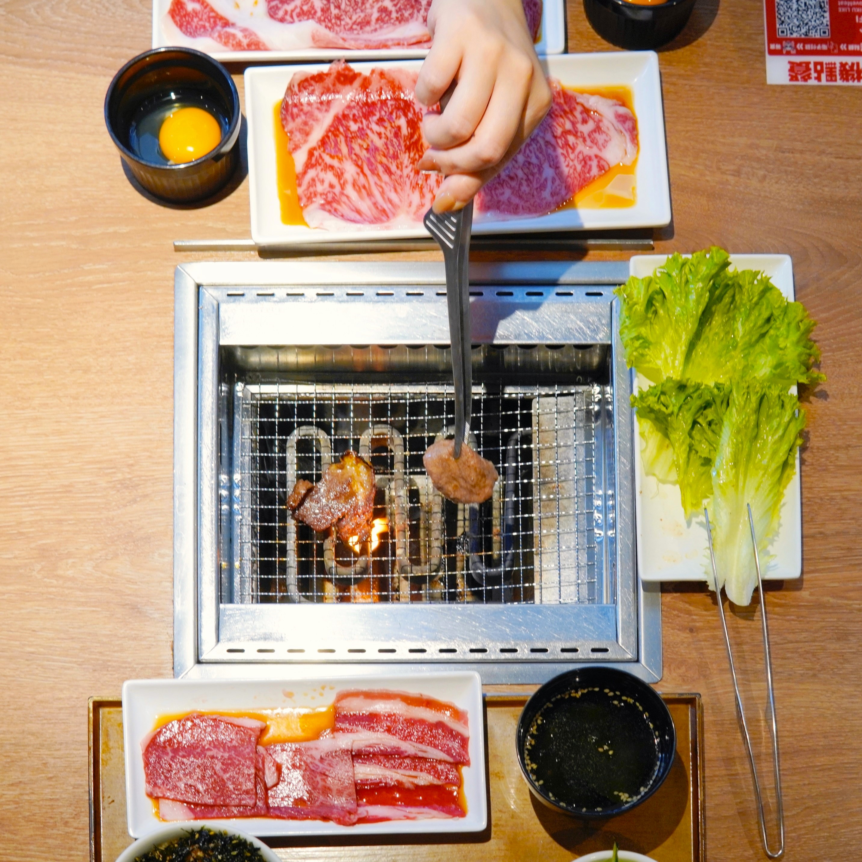 另有多款坊間燒肉店少見的近江牛稀有部位,包括西冷、肉眼和牛柳,每個部位的油脂、味道和肉質迥然不同。西冷的鮮嫩度媲美牛柳,油花分布細密,肉質細緻且有嚼勁,建議燒至三至五成熟;肉眼是牛背部肋骨上方的肉,位於肩胛跟西冷之間,脂肪、油花較豐富,入口即融,肉味濃郁,建議燒至五至七成熟;牛柳是牛脊之上的肉,屬和牛最嫩處,帶有較少油脂但口感軟嫩,建議燒至五成熟以品嘗最佳風味。若想品嘗近江牛肉的獨有最原始的鮮味,建議蘸少許鹽已可,亦可沾上蛋液提升滑嫩口感。 (記者、攝影:Janice)