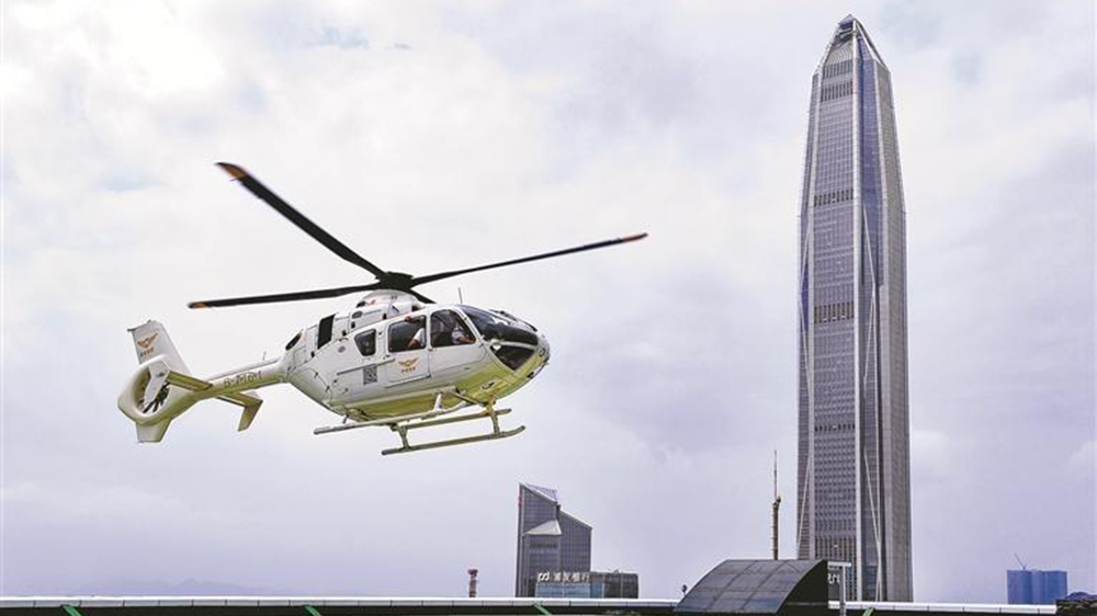頂圖:東部通航的直升機準備降落在深圳市中心的大中華直升機場。新華社發