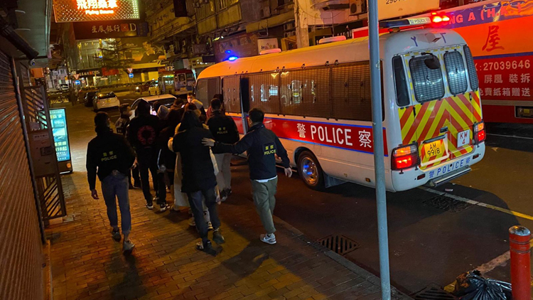 油尖警區反三合會行動組聯同西九龍情報組根據線報及經深入調查後,今日(26日)凌晨約3時在區內展開打擊非法賭博行動,突擊搜查南京街一個單位,搗破一個懷疑非法釣魚機賭檔,拘捕13人,包括一名男主持及12名賭客。