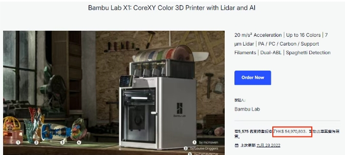 拓竹科技首款打印機眾籌數千萬元 圖源:Kickstarter