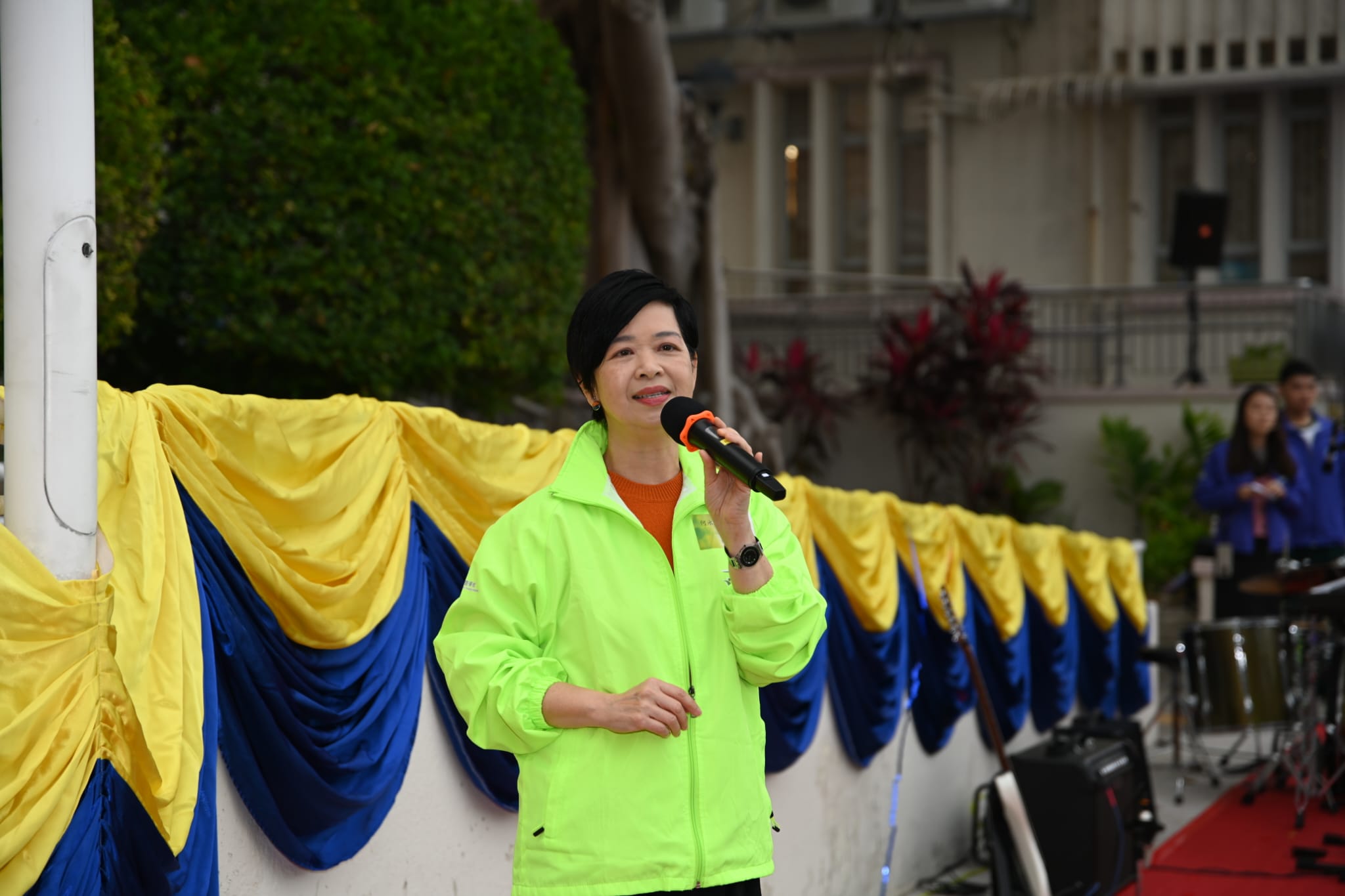 何永賢致辭時表示,昔日曾參與心光的擴建工程,今日重遊舊地並有機會參與蒙眼步行體驗,踏着引路徑讓她深深感受到多年來在房屋工作中不斷完善及加入觸感設施的意義重大。她勉勵大家積極面對每天的挑戰,將自己擁有的能力努力發揮出來。