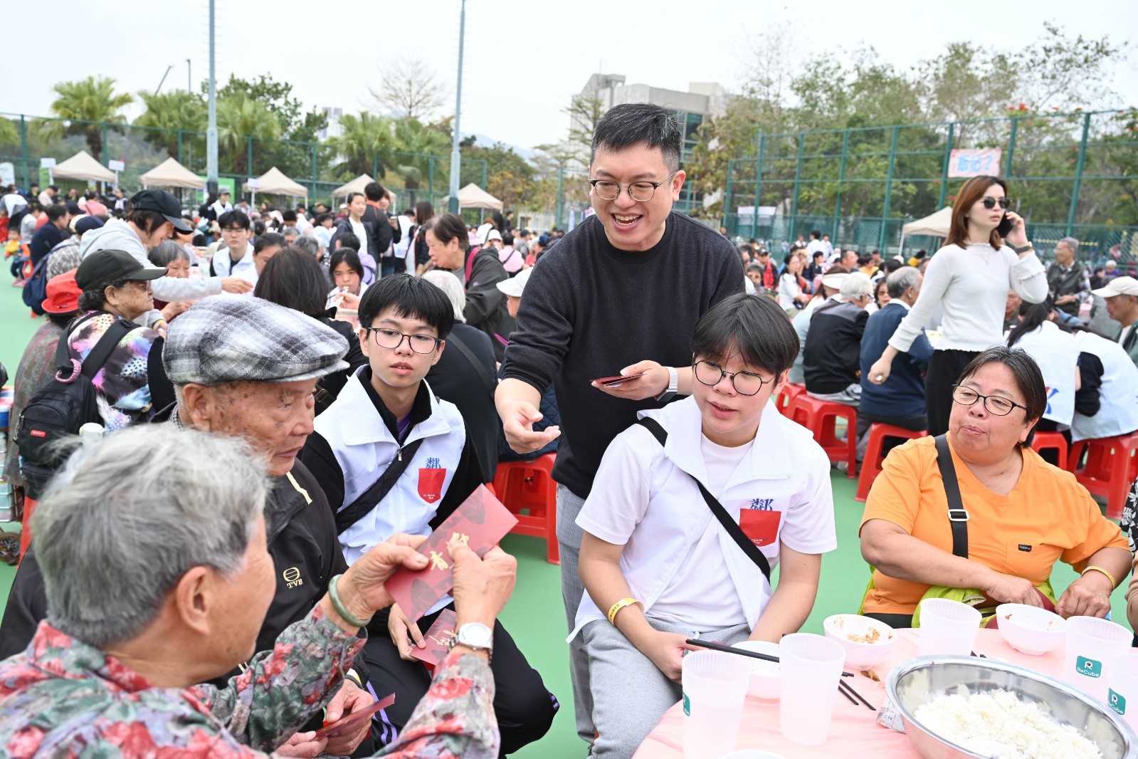 香港青年協會「鄰舍第一」社區計劃今天(7日)由青年啟動全港「鄰舍團年飯」,近2,000位青年義工擔當主角,邀請18區近10,000位坊眾,於各區同步團年,迎接金馬新歲,氣氛熱鬧溫馨。
