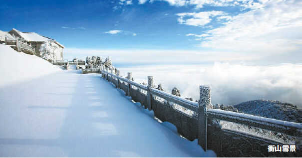 到湖南賞雪,南岳衡山絕對是一個不可錯過的絕佳去處。衡山自古以來就是旅游勝地,歷代帝王都曾在此狩獵祭天;唐代大詩人李白曾以「回飆吹散五峰雪,往往飛花落洞庭」的傳神之筆,描繪南岳的冰雪美景。
