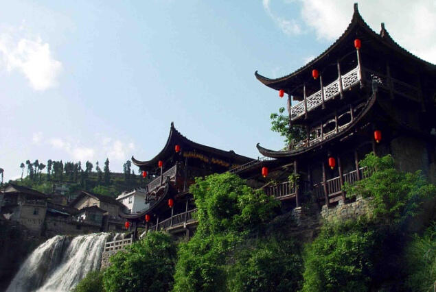 掛在瀑布上的小鎮 千年古鎮俏芙蓉