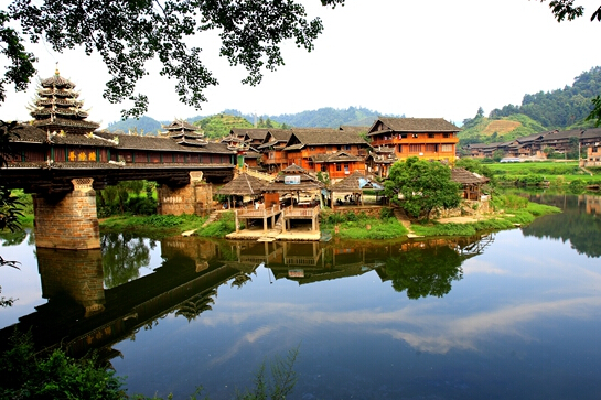 皇都侗族文化村由頭寨、尾寨、盤寨、新寨四村組成組成,這里不僅有被譽為侗族建筑"三寶"的風雨橋、鼓樓、涼亭,而且還有風情獨特的侗族民樂和歌舞表演,原汁原味,古色古香。