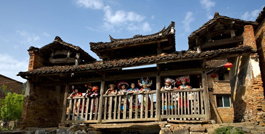 蘭溪勾藍瑤寨:"隱居"于美麗的群山之中,是一個保存非常完好的勾藍瑤人祖居地,有"世外桃源"之美譽。蘭溪勾藍瑤寨歷史上勾藍瑤胞是不與外界通婚的,都是男子做"上門女婿"。瑤民根據姓氏集合聚居,一個姓氏一個門樓,門樓由木柱架接而成,均為三層結構,每根木柱下面布置青石雕花抱鼓石,梁枋雕花。自唐以來,這里先后共建5座戲臺和66座寺廟,延綿五個朝代,經久不衰,古風猶存。瑤寨至今保留明代、清代的民居300多棟,隨處可見社壇土地、舞榭歌臺、涼亭橋梁,其中大型的有盤王廟、相公廟、老虎廟、關公廟等。這些建筑的造型精致,飛檐翹角,雕梁畫棟,獨具特色,充分顯示了瑤民工匠的智慧。