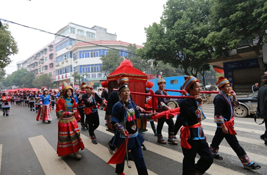 原生態瑤族婚嫁:江華傳統瑤族婚禮獨具濃郁的民族特色,包涵了豐富的民族文化,以其獨特的魅力,成為瑤族風俗中最絢麗的奇葩。傳統瑤族婚禮包括唱攔路歌、闖攔門關、跳鴛鴦舞、拜堂等環節,并向前來參加婚禮演繹的干部群眾發放喜糖。如果你有幸看到一場瑤族婚禮,你會看到整個婚禮設宴現場,賓朋滿座,瑤族同胞身穿傳統服飾,舉行座歌堂、迎親、拜堂等傳統儀式,整個過程鼓樂齊鳴,熱鬧非凡。