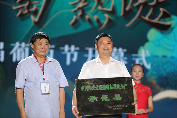 【香港商報網訊】“全國陽光玫瑰葡萄標準化生產學術研討會暨澧縣第十五屆葡萄節”18日晚在澧縣舉行,開幕式現場,中國農學會葡萄分會授予澧縣“中國陽光玫瑰標準化栽培示範縣”稱號,並為“中國農學會葡萄分會澧縣工作站”授牌,國家地理標誌保護產品“澧縣葡萄”再譜華章。