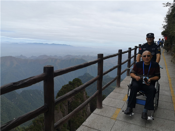 10月25日,全國山嶽景區無障礙旅遊示範會在湖南莽山舉行,來自全國省肢殘協會的受邀嘉賓在工作人員的帶領下參觀遊覽了莽山五指峰景區,一些坐輪椅的遊客體驗了五指峰景區的全程無障礙旅遊。