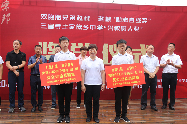 她為考入清華、北大的山區貧困學子胞胎兄弟獎勵20萬元,鼓勵他們不甘平庸、自強奮發的可貴品質。長沙市北大新世紀恒定中學向三官寺土家族鄉中學的教師們獎勵20萬元,鼓勵紮根鄉村的基礎教育老師們以仁愛之心勤耕樂教、化育英才。並承諾以後三官寺境內的學子考上清華、北大,同樣獎勵每人10萬元,激勵更多的山區學子汲取榜樣力量,得到了當地人們的高度讚揚。
