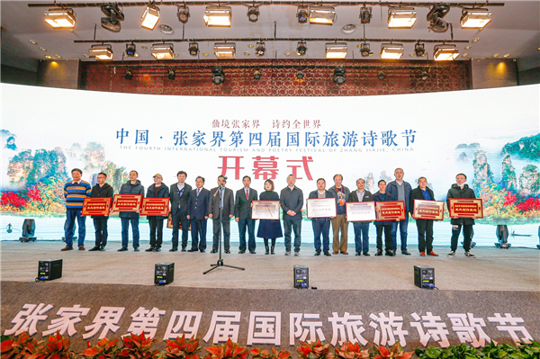 詩歌節上,張家界市國際旅遊詩歌協會授予武陵源核心景區、天門山、大峽谷、茅岩河、黃龍洞、寶峰湖、八大公山、石堰坪蘇木綽、大庸古城、《魅力湘西》劇場等十大景區、景點和文旅企業為首批詩歌采風創作基地。