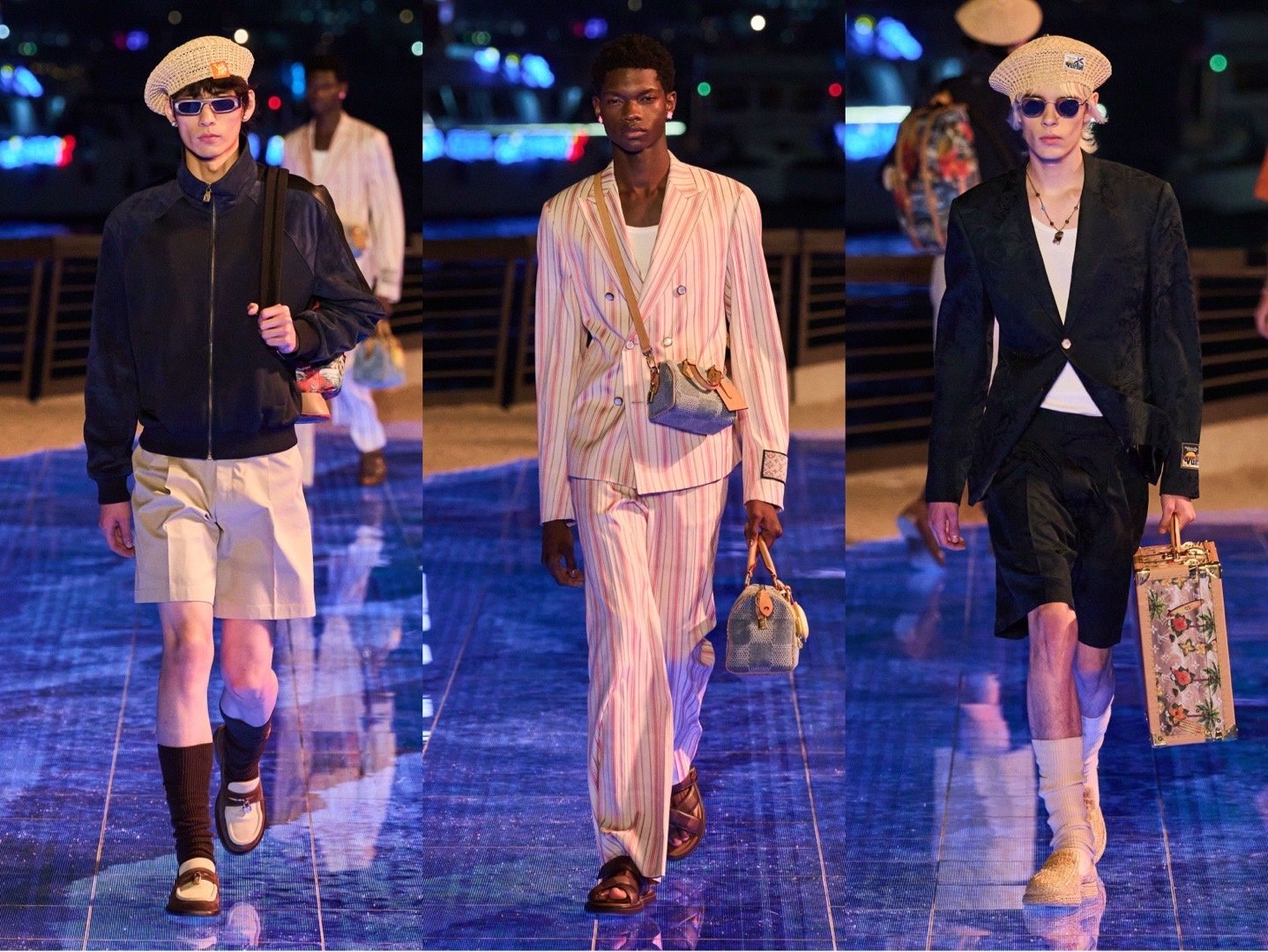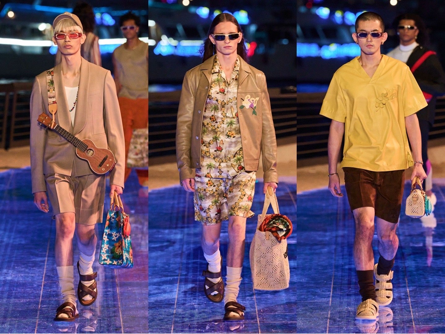 今季男裝與上一季相比大幅削減了標誌性的棋盤格與老花元素,從嚴肅着裝轉向更為年輕的款式剪裁,以及更加花俏的設計裝飾。豐富多樣的夏威夷風情和海洋元素融入服裝設計中,如潛水服、沖浪服等,讓整個系列散發出一股度假的閒適氣氛,令觀眾恍如置身於夏威夷的美麗海灘。