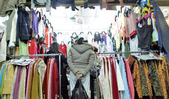 “货里面也分好坏,好一点的是库存货,每件是五、六块到十多块不等,如果是旧货就更便宜了,最低的是两三块,多的也就十二、三块。如果是羽绒,一件也就五十块钱左右。”