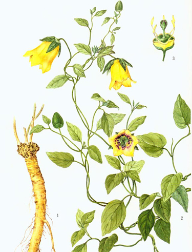 现如今应该很少有人将党参和人参混为一谈,而以前的人却一直认为党参与人参同属一家。党参虽称为参,但它和人参有着很大的区别,唯一相同的就是它们都长在土里。据史书药典记载,明代前是没有党参的,直到清朝年间的一些药书中才有了党参的身影。党参在植物学科里属于桔梗科,人参是五加科(此科还有西洋参、高丽参、三七等)。除此之外,从生长形状上看两者也不同,人参根肥须多,党参则根细须少,且纵向长得细长,药效上,党参是不及人参的。可就是因为与参沾了点“远房亲戚”关系,党参在药膳中便有了重要的一席之地。