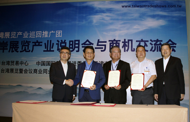 6月9日,津台两地会展业者签署合作备忘录。当日,台湾12家展览业者组成的“2014年台湾展览产业巡回推广团”在天津举办“两岸展览产业说明会与商机交流会”,与当地展览业者洽谈合作商机。