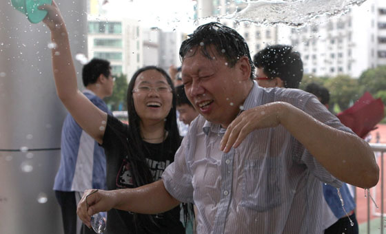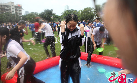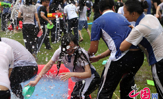 中国网6月11日讯 2014年6月10日,深圳市福田中学举行高三毕业典礼与泼水节,在进行了简单的毕业典礼后,校长一声令下,主席台上的老师、操场上的学生开始互相泼水。位于主席台的福田中学校长郭其俊也被数名学生围着泼水。操场上的“战场”更加疯狂,不少学生把自己的班主任扔进了水池,老师也不甘落后,纷纷拿起脸盆朝学生反击。福田中学举办泼水节的宗旨是以水为媒介,进一步拉近师生、生生之间的距离,密切师生、生生之间的友谊,也为高三毕业的同学留下快乐的回忆。(麻友同学/东方IC)