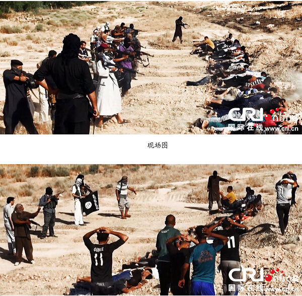 当地时间2014年6月14日,伊拉克萨拉赫丁,伊拉克极端武装“伊拉克和黎凡特伊斯兰国”武装人员处决大量俘虏的伊拉克安全部队士兵。