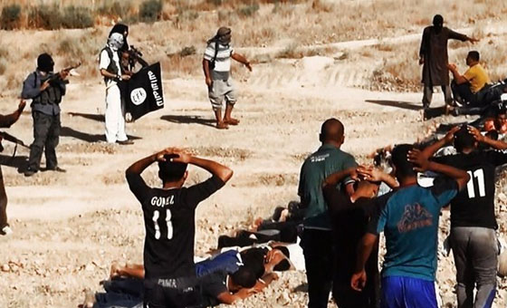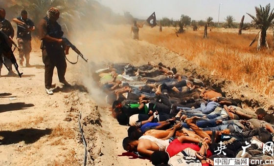 当地时间2014年6月14日,伊拉克萨拉赫丁,伊拉克极端武装“伊拉克和黎凡特伊斯兰国”武装人员处决大量俘虏的伊拉克士兵。
