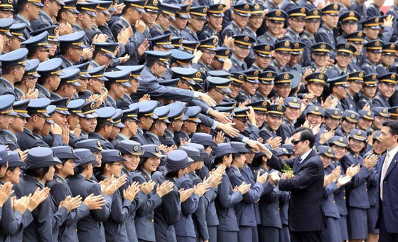 马英九致词时提出传承黄埔精神、发扬忠诚军风、充实本职学能、勇于承担责任、掌握全盘情势等6点与官兵共勉。