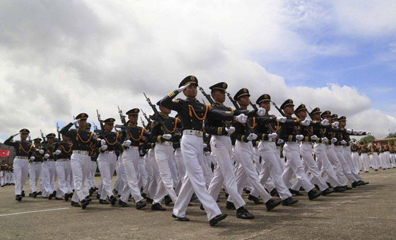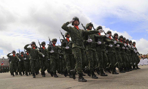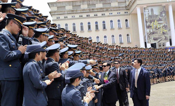 人民网6月16日电 据台湾“中央社”报道,台湾军方今天举行黄埔建军90周年暨三军联合毕业典礼,庆典分别举行空中分列式、地面阅兵分列式,场面浩大,马英九亲临主持。