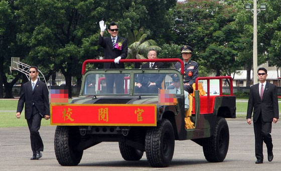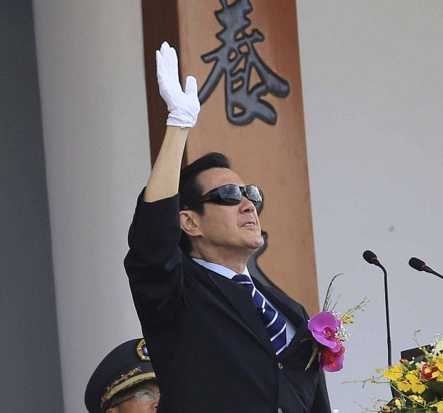 据报道,马英九亲临主持典礼,由于他日前才动白内障小手术,今天阅兵全程戴墨镜出席。