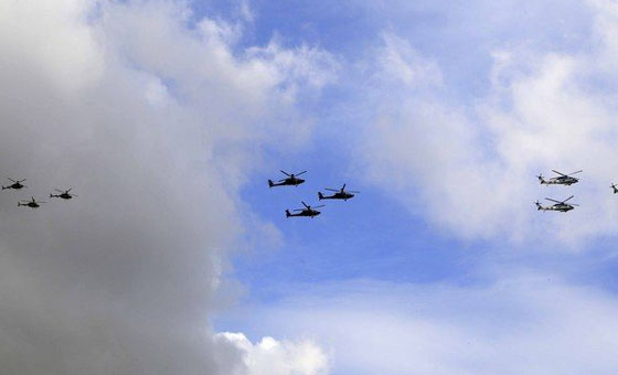 适逢黄埔建军90周年,台“国防部”今年扩大举办黄埔建军90周年暨三军联合毕业典礼,安排S70C、有“坦克杀手”之称的AH-64E阿帕奇直升机、OH-58D、UH-1H等现役机型进行空中分列式,还有黄埔教导团、机步333旅和三军官校实施地面阅兵分列,场面浩大。