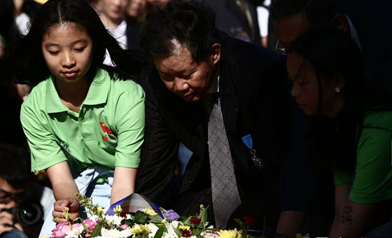 当天下午巴黎阳光明媚,凯旋门下旗帜飘扬。各方代表分批向凯旋门下无名战士墓敬献花圈,缅怀100年前为法国的自由与和平献出宝贵生命的中国劳工。中国驻法国大使馆领事部主任李平应邀为长明灯添火、拨旺火焰。英国驻法国大使馆代表吉姆·托尔贝发表致辞,代表英国政府向参与一战的中国劳工表示敬意。
