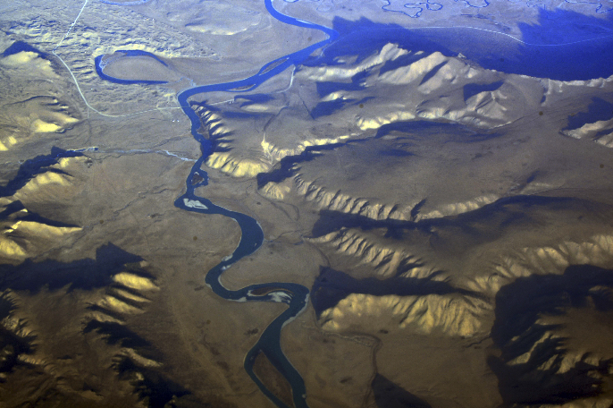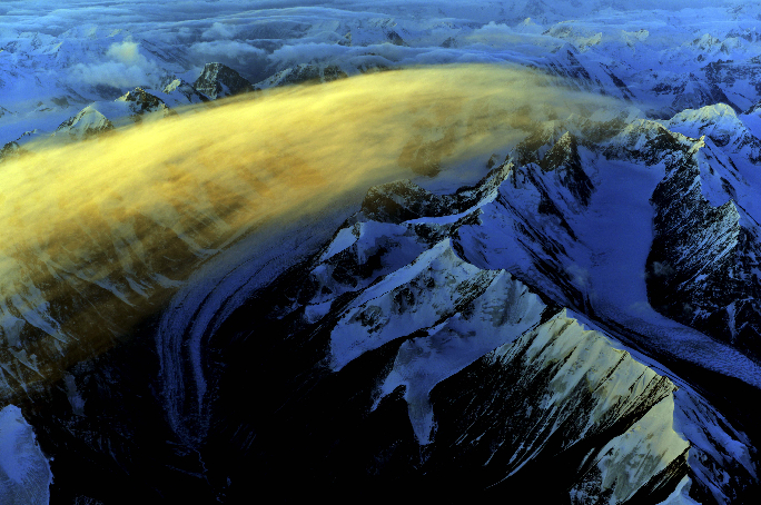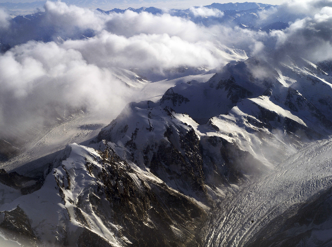 这是空中拍摄的新疆天山(2013年4月15日摄)。