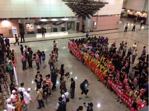 桃园机场,各路媒体和团体静候张志军一行到来。
