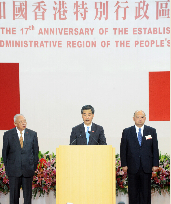 行政长官梁振英在会展的回归17周年酒会致辞。
