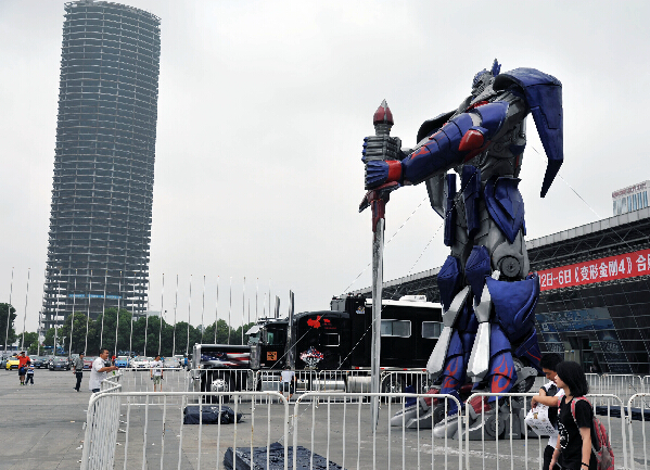变形金刚嘉年华 “擎天柱”汽车原型霸气亮相。 7月2日,“擎天柱”汽车原型霸气亮相,与小“刚丝”亲密接触。当日,在《变形金刚4》热映之时,一场变形金刚嘉年华在安徽合肥上演,8米高“擎天柱”、6.5米高“大黄蜂”以及88年至今的上千件“变形金刚”珍品模型及“汽车人”豪车部队在国际会展中心亮相。