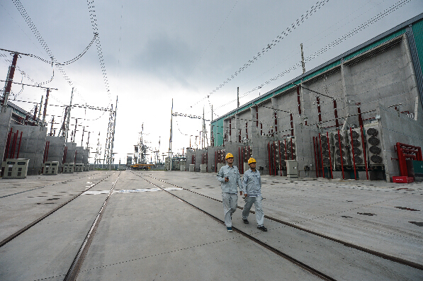 7月3日,金华换流站的工作人员在巡查。该换流站是±800千伏溪浙特高压直流输电工程的终点。