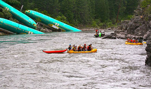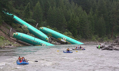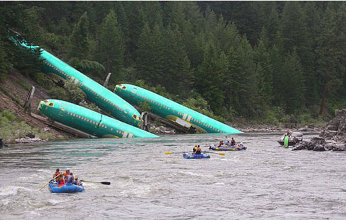 国际在线专稿:据英国《每日邮报》7月6日报道,一辆货运列车于当地时间7月3日在美国蒙大拿州西部脱轨。该列车载有3节波音737机身部件。随着列车的脱轨,这3节庞然大物沿着陡峭的河堤,滑入克拉克福克河(Clark Fork River)。