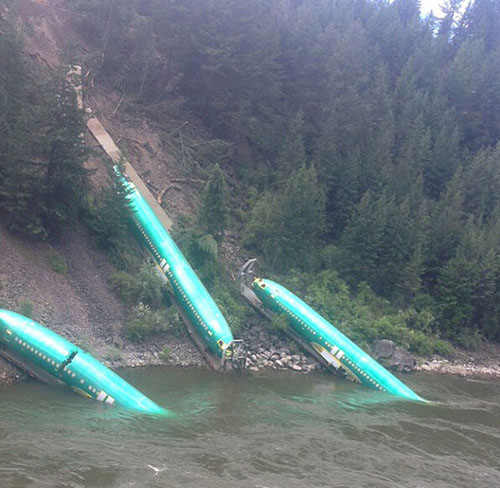 原标题:美列车脱轨所载波音737机身翻入河中场景如灾难片