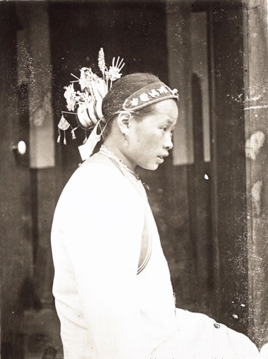发髻是客家婦女的一種頭飾。她們還是姑娘的時候,一般都留長发,在腦后結個單辮,繫上紅頭繩。一旦婚事議定,成了小媳婦,就必須擇日盤发髻。之后,盤发髻就成了已婚婦女「梳妝」的主要內容。发髻盤好后,套上用黑線織成的「髻絡」,用一把銀夾,自下往上把頭发的大部夾住,然后用三把銀叉,自上往下,分左中右,從三個方向把頭发夾住,最后再用一根銀簪橫穿而過,將发髻固定。其中,銀叉均為刀形,銀簪似劍,銀夾似叉,上面刻著各種花紋,美化著客家婦女的发髻。