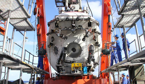 7月16日,“蛟龙”号载人潜水器开展2014至2015年试验性应用航次第一次下潜作业,主要目的是检验潜水器在不同深度的水下作业技术状态。本次下潜将采集海底沉积物和近底水样,拍摄海底富钴结壳和巨型底栖生物高清视像资料,并验证“蛟龙”号搭载的微型缆控机器人(ROV)“龙珠”的各项功能。新华社记者 罗沙 摄