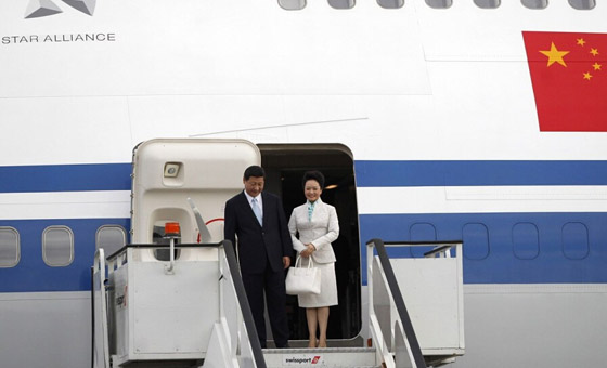 做为国家主席习近平出访所乘专机,中国的“空军一号”是国航一架注册号为B-2472的波音747-400型客机。该机平时执飞国内客运航线,出访时临时改装为专机。近日,一组图片曝光了习近平专机B-2472内景。图为当地时间2013年3月24日,习近平携夫人彭丽媛乘坐专机抵达坦桑尼亚达累斯萨拉姆,习近平与夫人彭丽媛携手走下飞机。