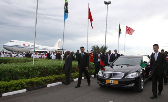 国航客运机队里目前有8架波音747客机,均为B747-400型,分别引进与1993年至2000年间,目前执行专机任务的主要是隶属于国航四大队、机龄最短的B-2472号(2000年5月2日引进,机龄次之的B-2471号(1999年9月22日引进)为备份机。他们的关系类似美国空军一号中28000号和29000号,不同的是中国的备份机一般只会留在北京待命,而不会空飞随行。图为当地时间2013年3月24日,习近平携夫人彭丽媛抵达坦桑尼亚达累斯萨拉姆,开始进行国事访问。