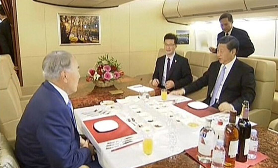 图为中哈两国元首在专机上会谈,这也是首次曝光飞机内部会议室结构图。