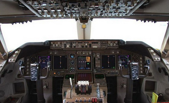 B2472的驾驶舱位于上层客舱前端,该型客机属于玻璃化座舱,原来老旧的仪表已被几块屏显替代,降低了机组人员的工作负荷。机组2人,一般飞国际航线需要多备份2个机组。