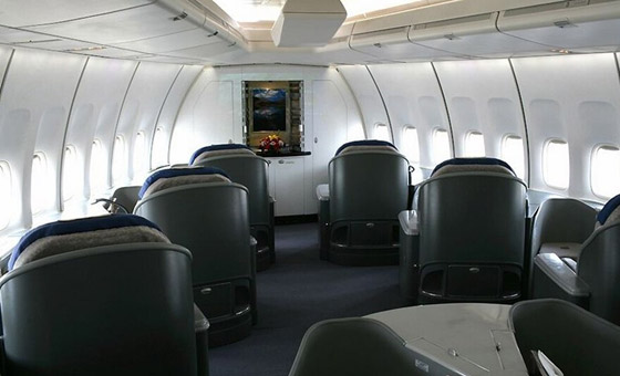 前舱即习主席乘坐的舱段。它位于驾驶舱正下方的下层客舱前端,安置有10个可135°半平躺的座椅,呈鱼骨状排列。其座椅部置也会根据需要进行调整,但基本不会像大家想象中的那样豪华,基本相当于商务客舱的水平。