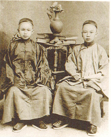 ▲留美幼童唐绍仪(右)和梁如浩,唐后来成为民国第一任总理,梁出任过清末邮政副大臣,梁的儿子娶了唐的女儿。