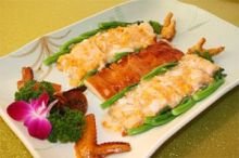 這道菜原為廣州文園酒家招牌菜,是將蝦膠攤瓤在鸡皮內側蒸熟而成。裝盤時以江南名花夜來香或白菊花伴邊,故稱為「百花鸡」。因蝦膠適應性強,可用於蒸、煎、炸、炕諸法,能制成各式各樣的名菜美點,成為一種用途廣泛的基本餡料,故人們又稱蝦膠為「百花餡」。現在泮溪酒店還保留著這道傳統的菜。