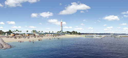 米切尔希望在棕榈树状的人造地面建造豪华酒店和数百万英镑的别墅。另外,根据计划还会修建一座33层的体育大厦供蹦极攀岩等运动,7星级的酒店也会修成海鸥的形状等。届时,它将形成海上防御系统。