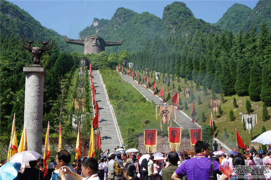 此外,景區內還有神農壇依山而建,分天、地二壇,天壇正中聳立著炎帝神農巨型牛首人身雕像。天壇之下為地壇,辟有可容數千人之眾的廣場。廣場大圓圖案,代表天;圓心處設正方形,代表地,方形圖案中,五彩石分別表示木、火、土、金、水五行。從地壇到天壇要經過243個台階,計分五級,自下而上,第一級為9步,稱「明九」;其餘四級依次為72、63、54、45步,皆是九的倍數,稱「暗九」。這種「九五至尊」的設計,暗含著神農的至尊地位。官門山景區則以生態科普展示為主題,是以探索與發現為