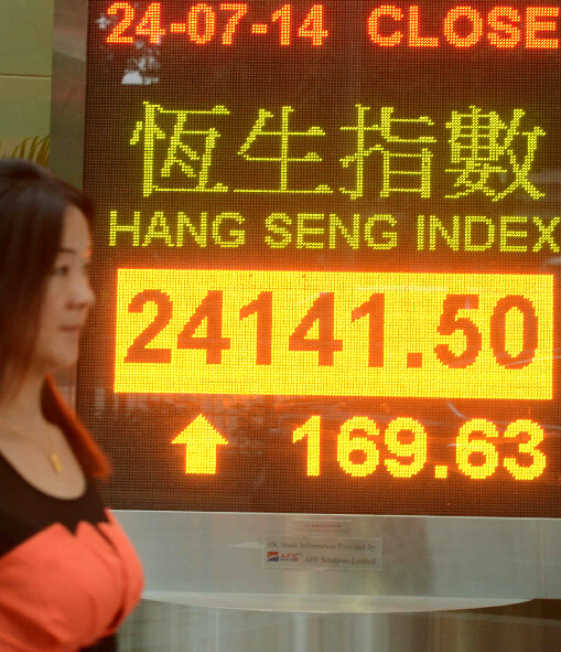 正當港股連升兩日創今年新高之際,另一邊廂,受惠於美國企業業績理想,特別是蘋果,美股形勢亦大好。標普500指數再創新高,升3點,再創收市新高。科技股表現理想,納指升17點。雖然道指收市跌26點,但與紀錄高位只差約50點。內地方面,汇豐公布中國7月制造業PMI初值升至52,創18個月新高,大勝預期,滬深股市走勢強勁,上綜指攻陷2100點大關,收報2105點,升26點;深證成指升128點。